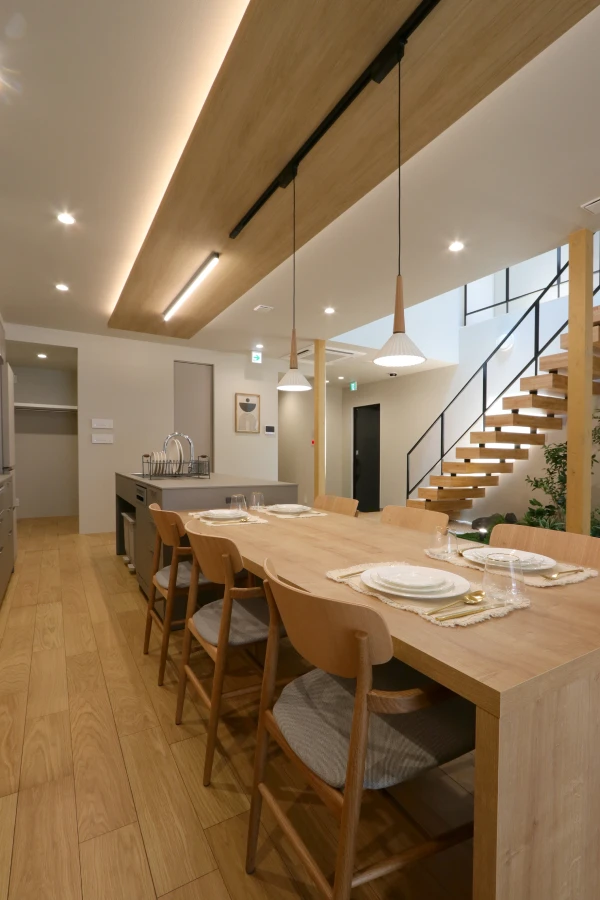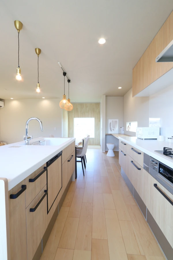 開放感と機能美を両立した、スタイリッシュなダイニングキッチン。