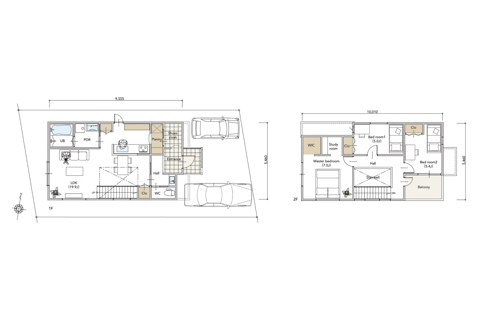 2つの帰宅動線と回遊動線で、無駄のない間取り。