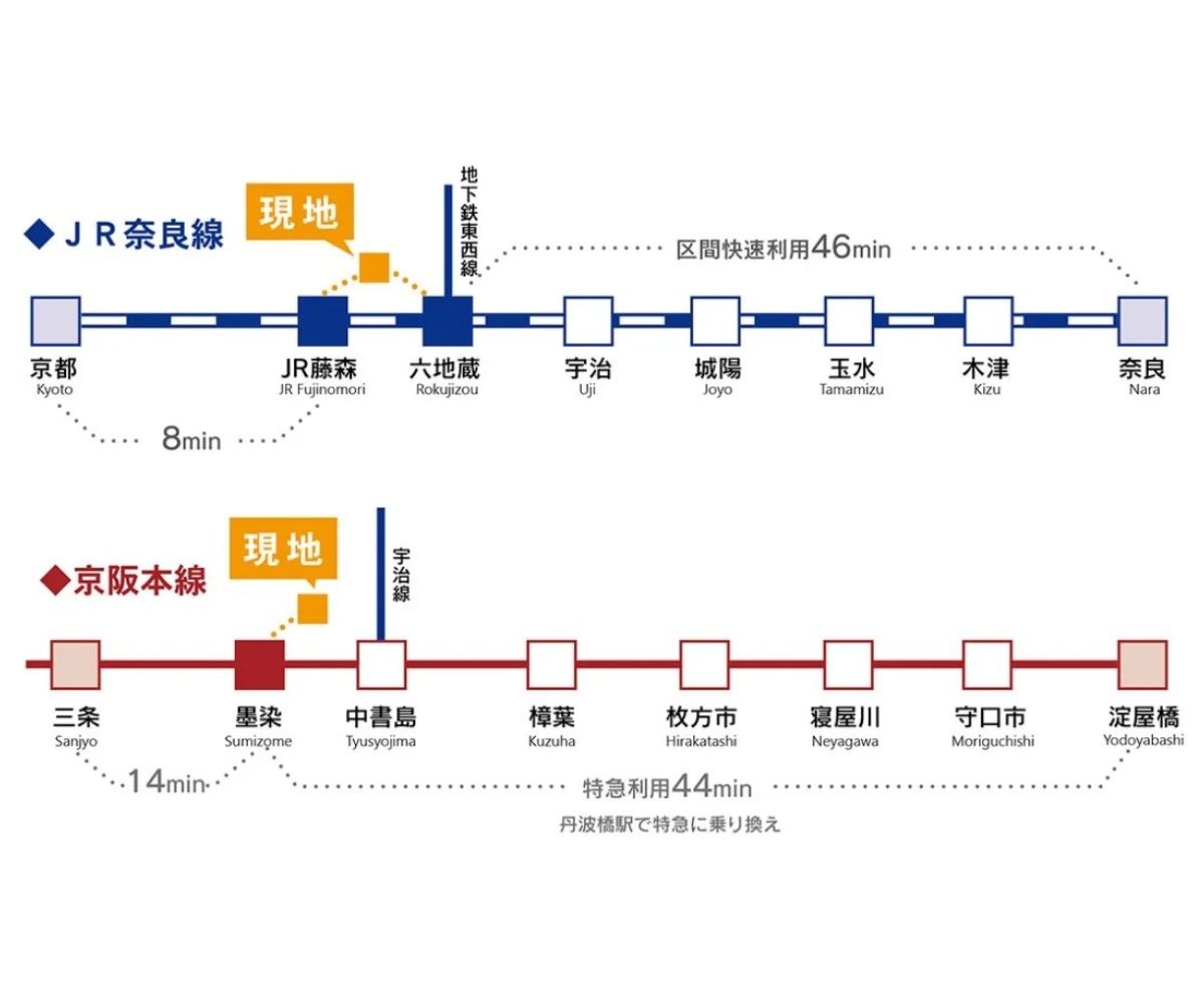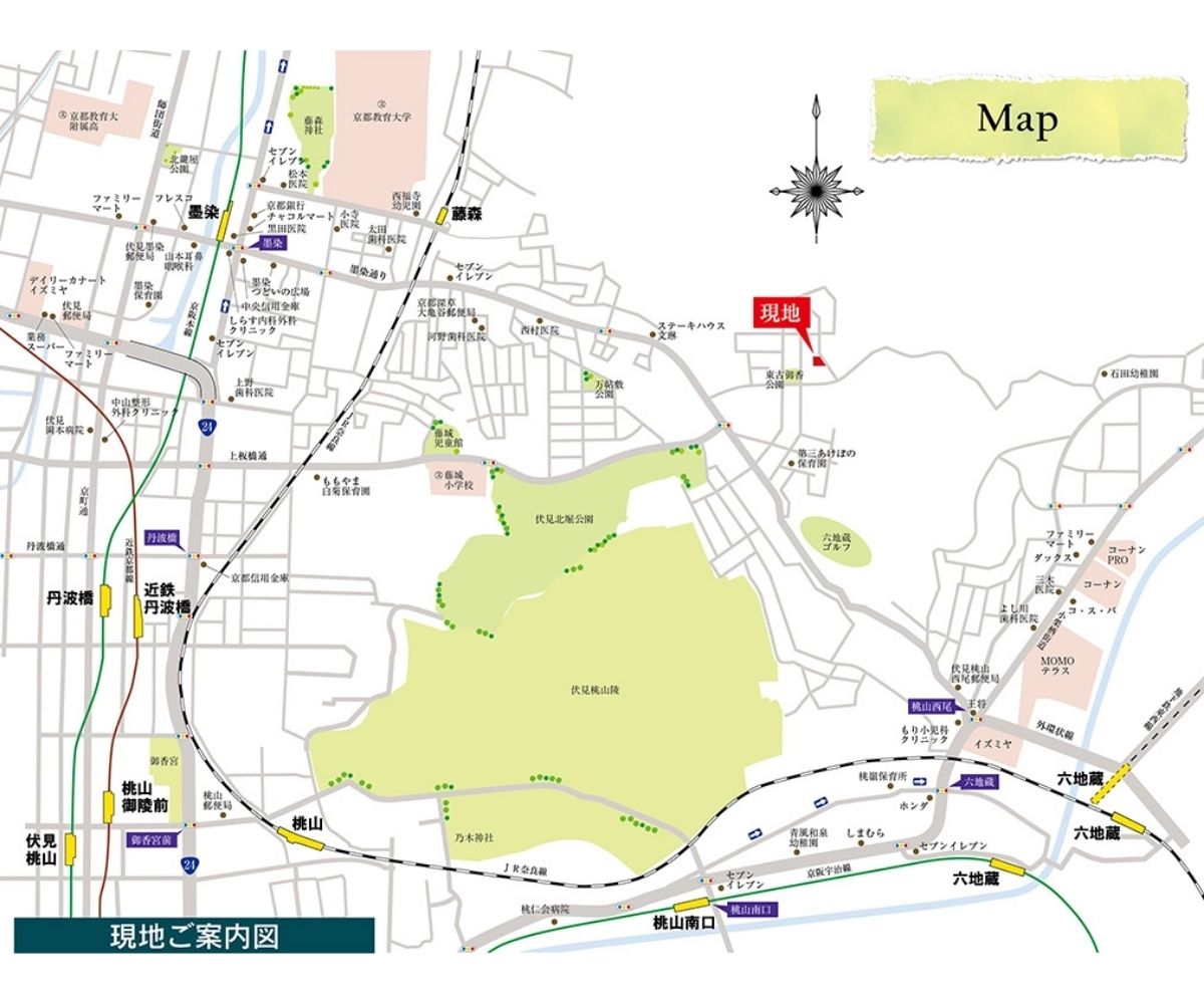 大型買い物施設が点在する伏見~六地蔵エリア。分譲地からも車ですぐの距離感で日々の買い物に困りません。