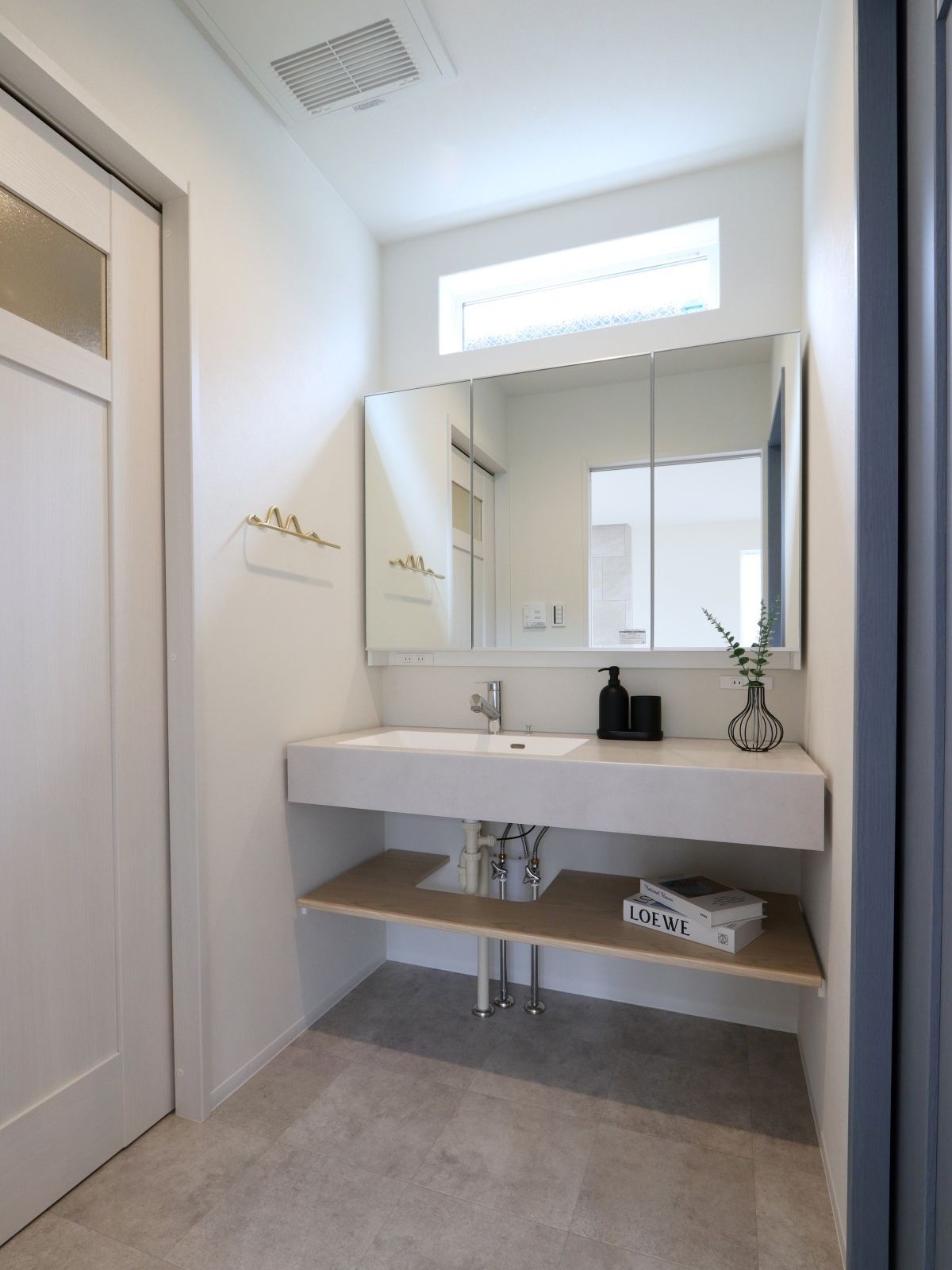 あわただしい朝も優雅に身支度が出来る広々ワイドカウンターの洗面。