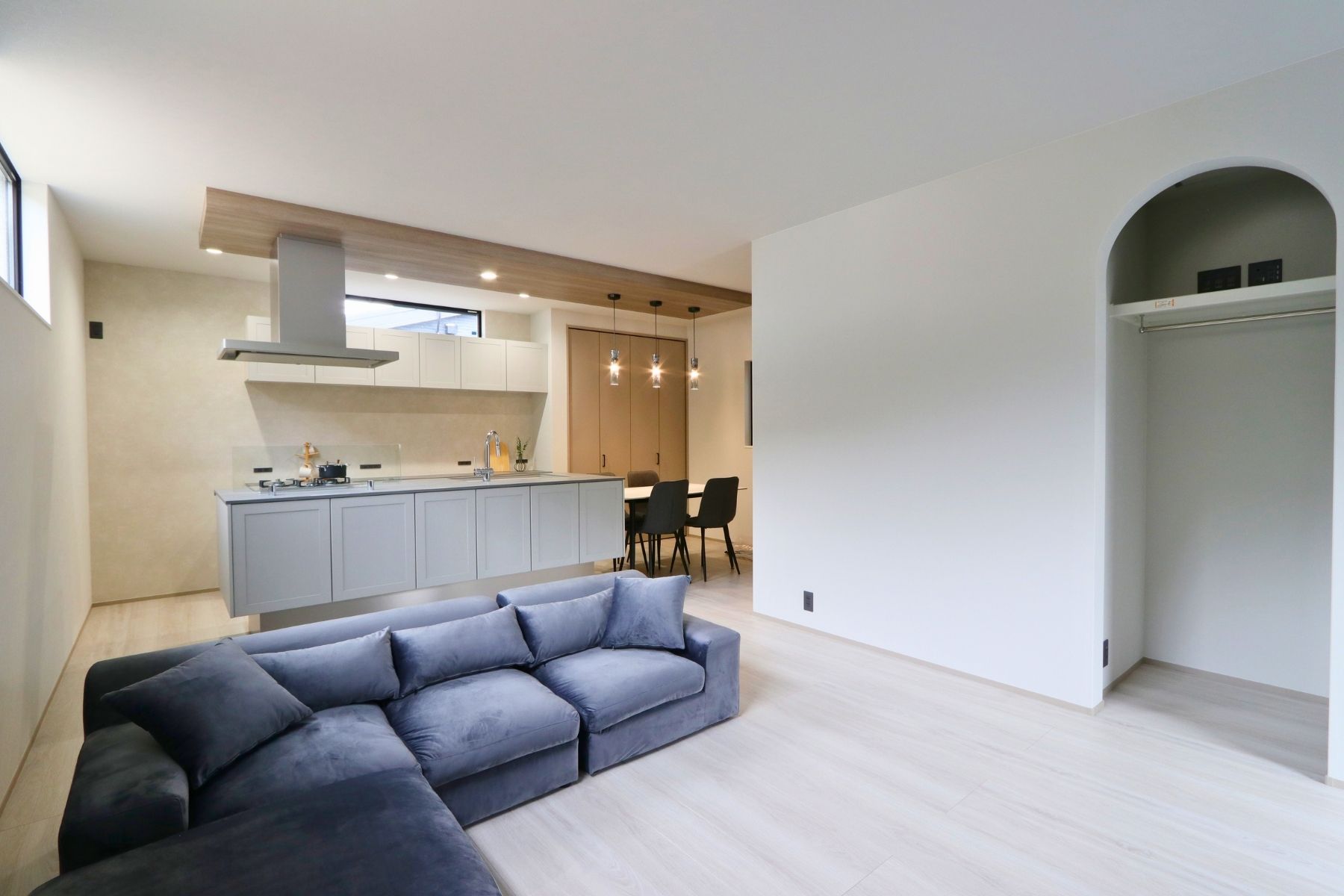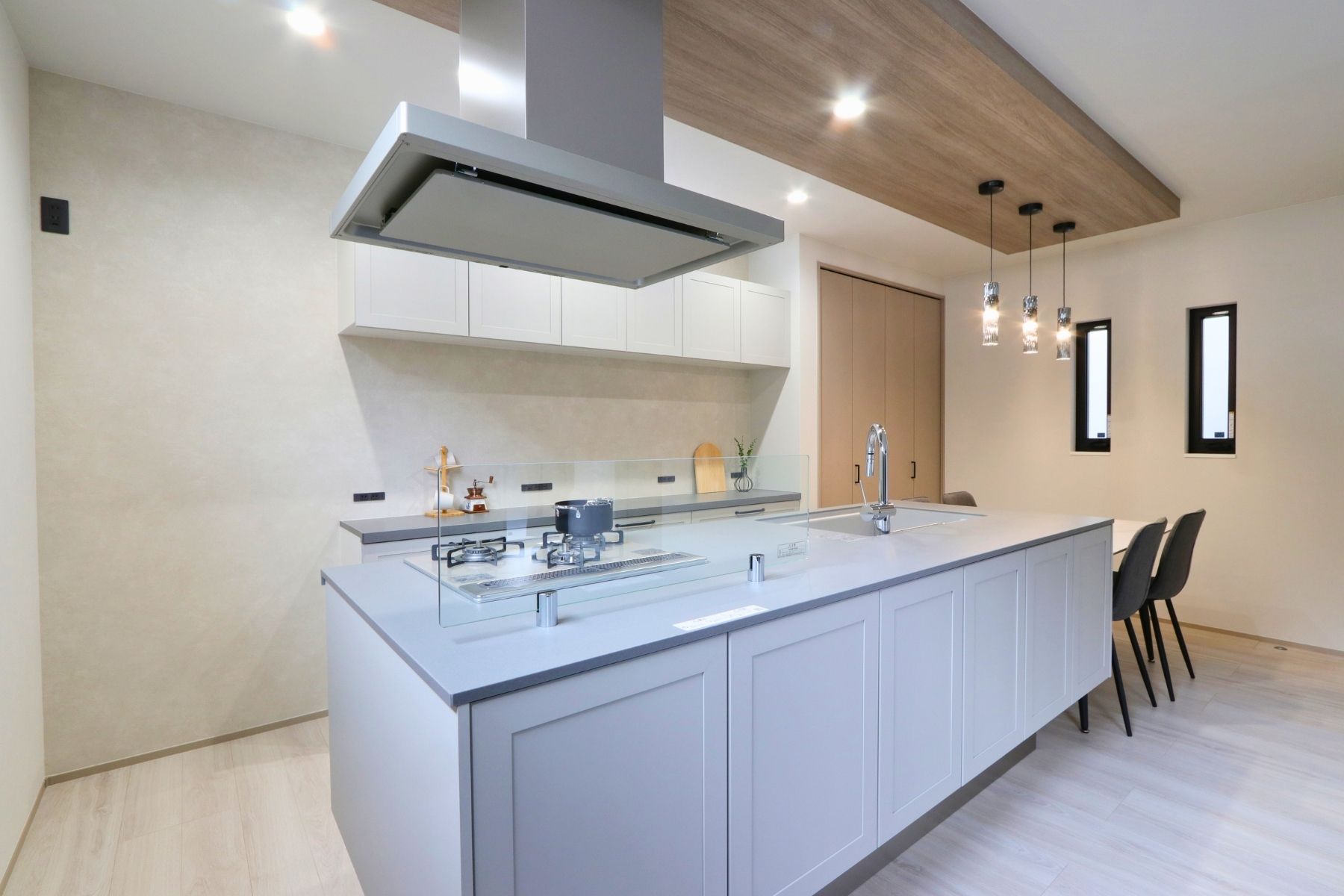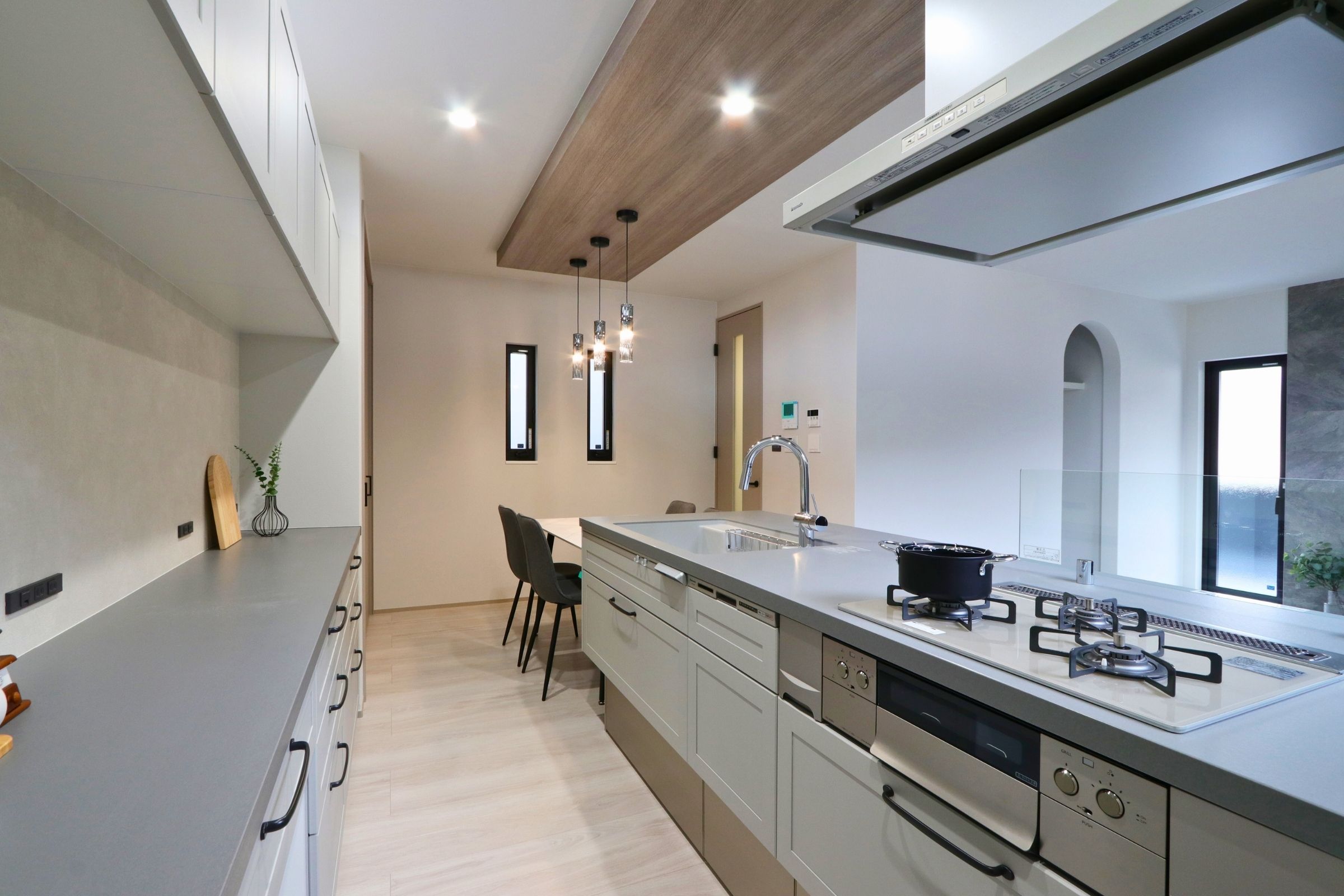 様々な方向から廻りこめるアイランドキッチンで優れた家事導線を実現。