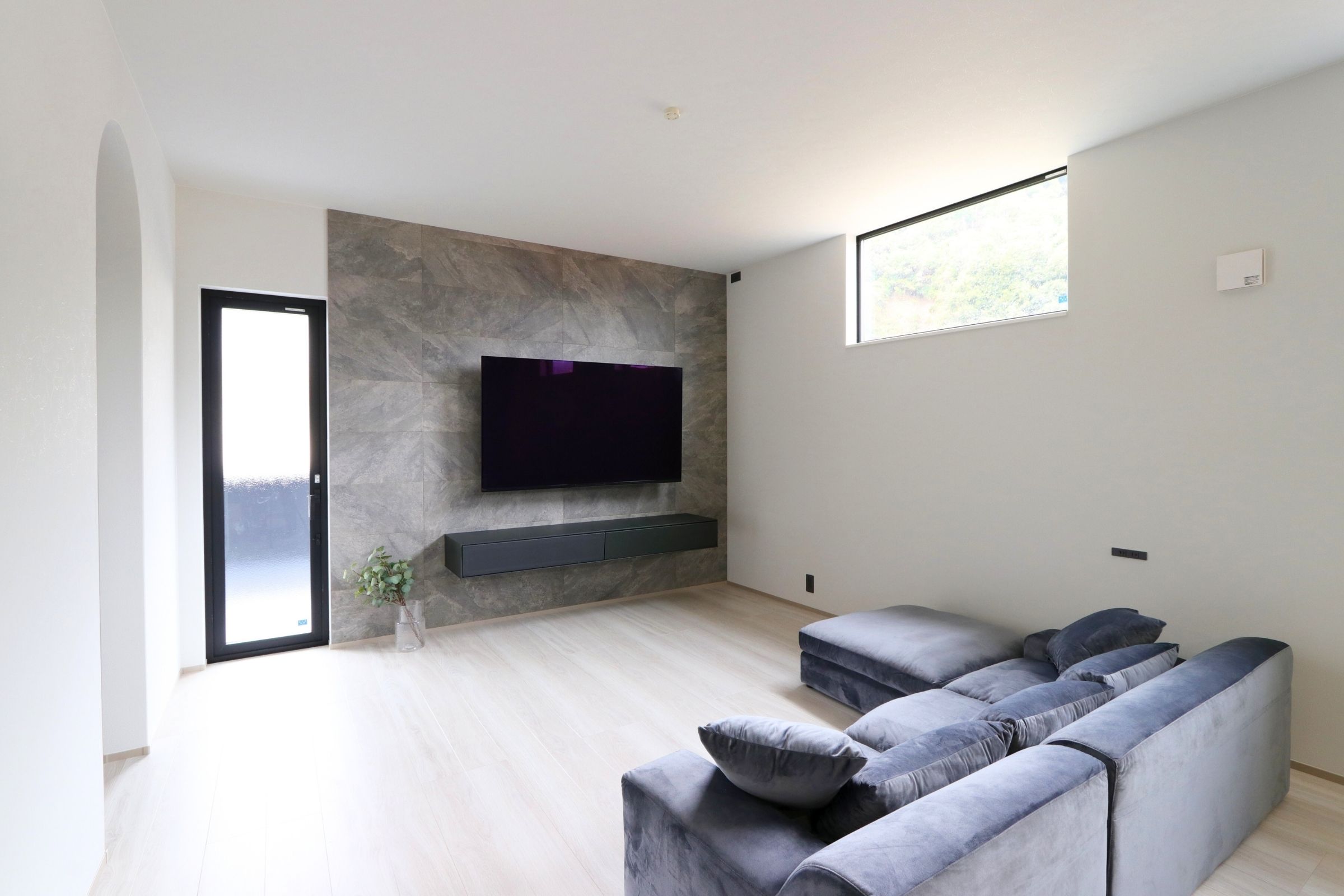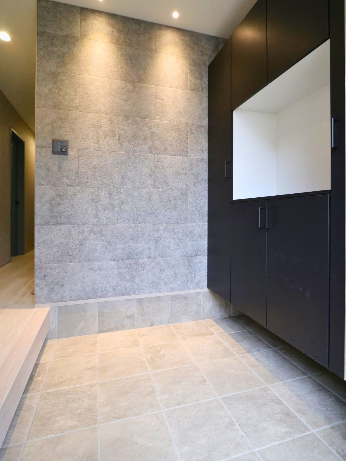 アクセントにグレーのエコカラットを採用し、上質な空間を演出いたしました。