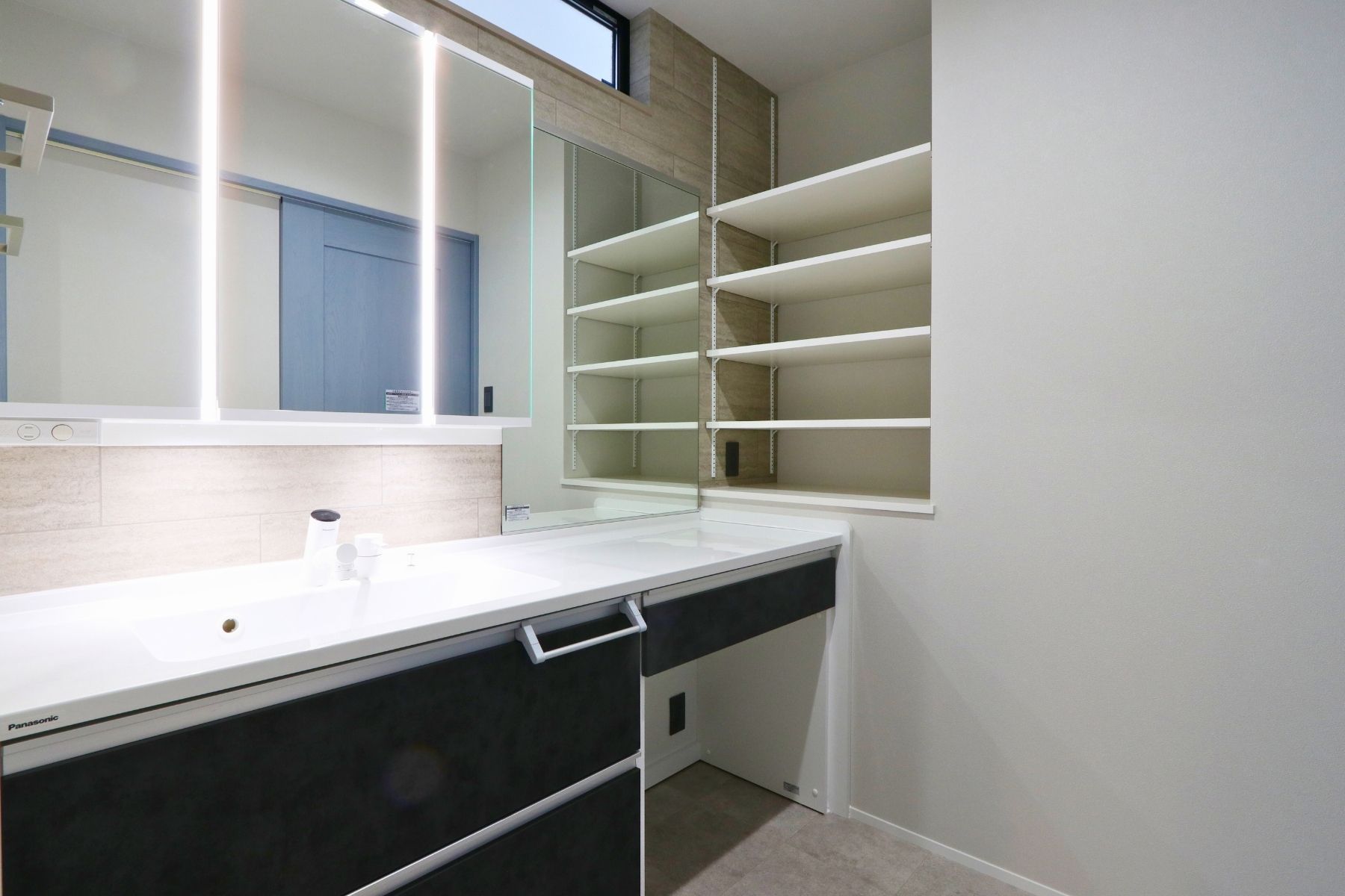 広くワイドな洗面ドレッサーで、朝もゆったり身支度。