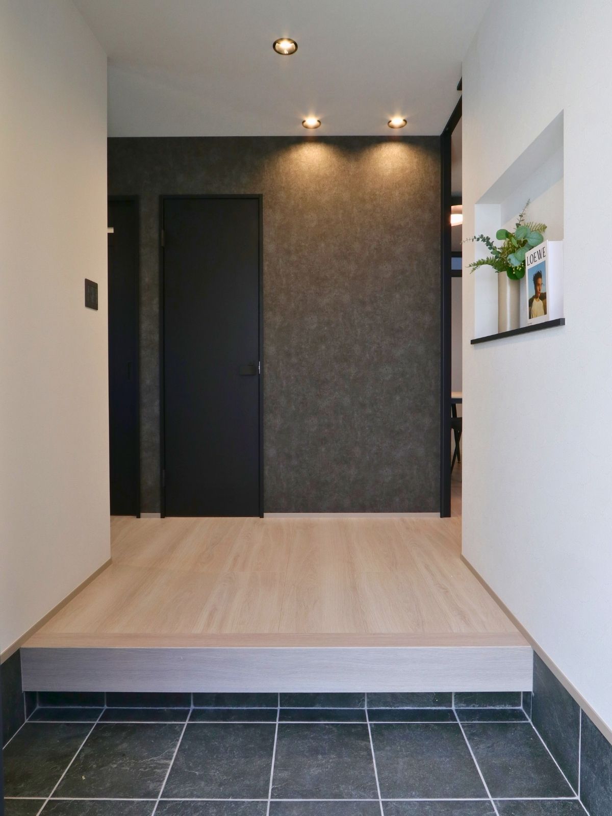 ニッチ棚やクロス貼り分けなど上質さを彩るエントランスホール。