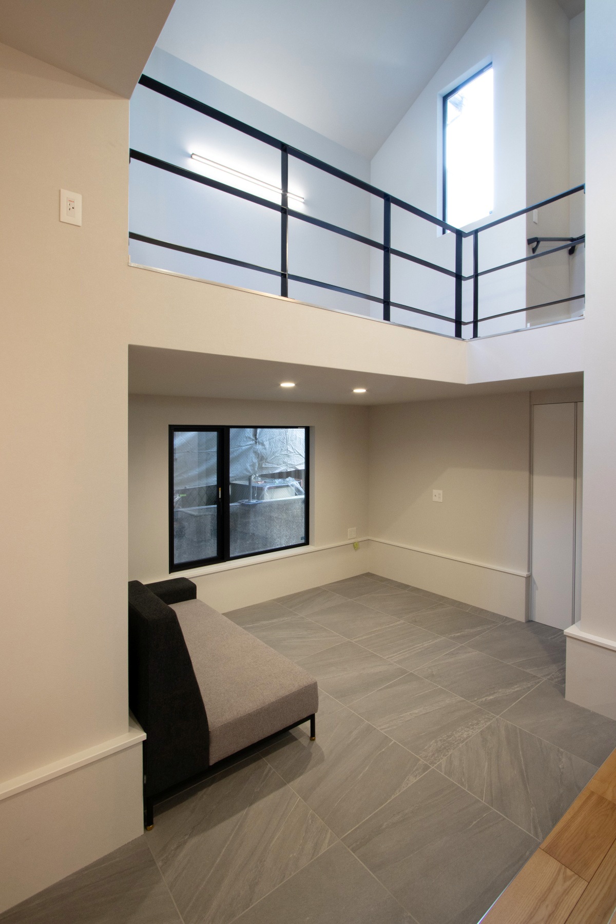 上部が大開口となったリビング吹き抜け。