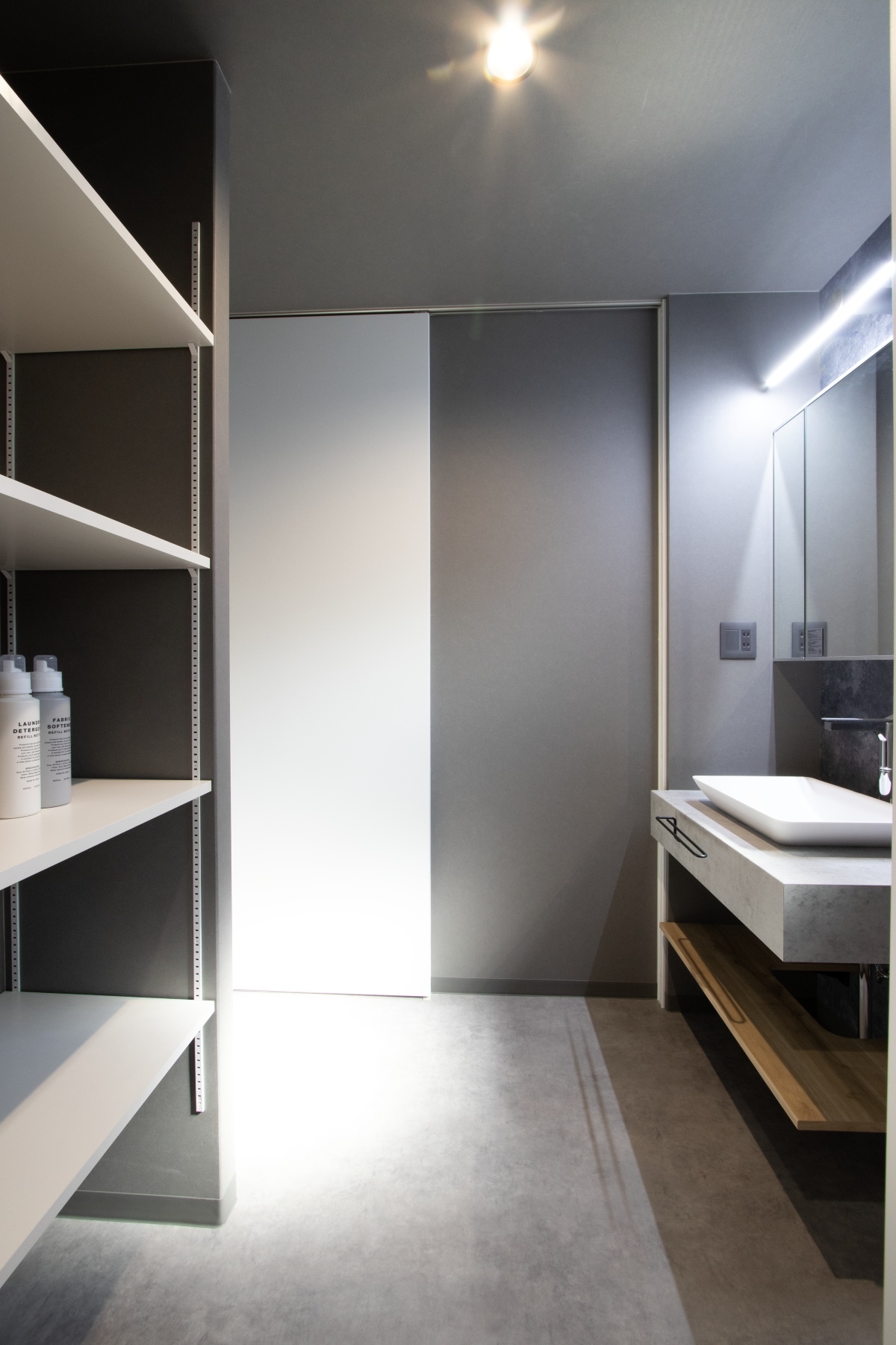大容量リネン棚も設置して機能性も高めています。
