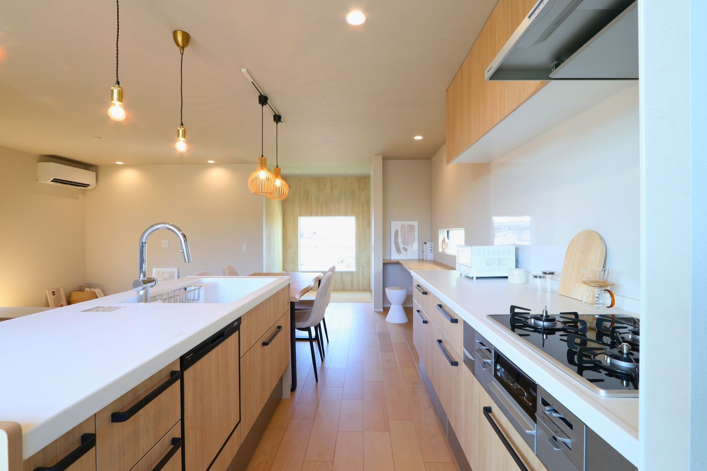 2型キッチンを採用し広々と回遊のできる動線を確保。