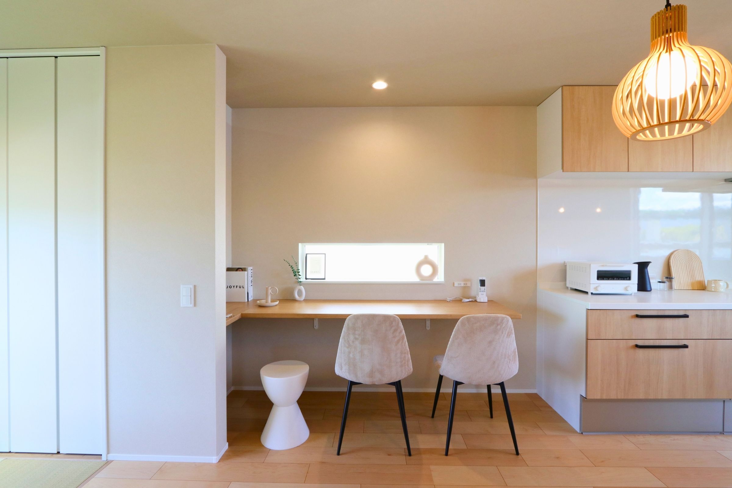キッチン横に設けたFIX窓のあるスタディーコーナー。