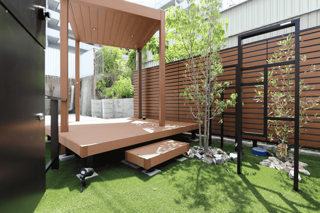 リビングと繋がっているウッドデッキ。家にいながらBBQなどアウトドア気分も楽しめます!