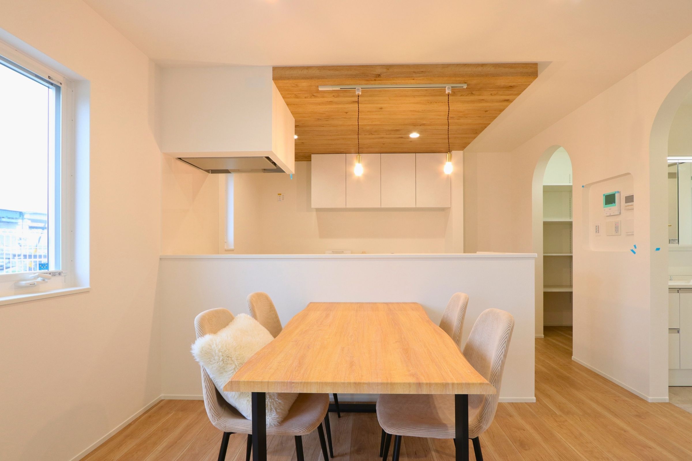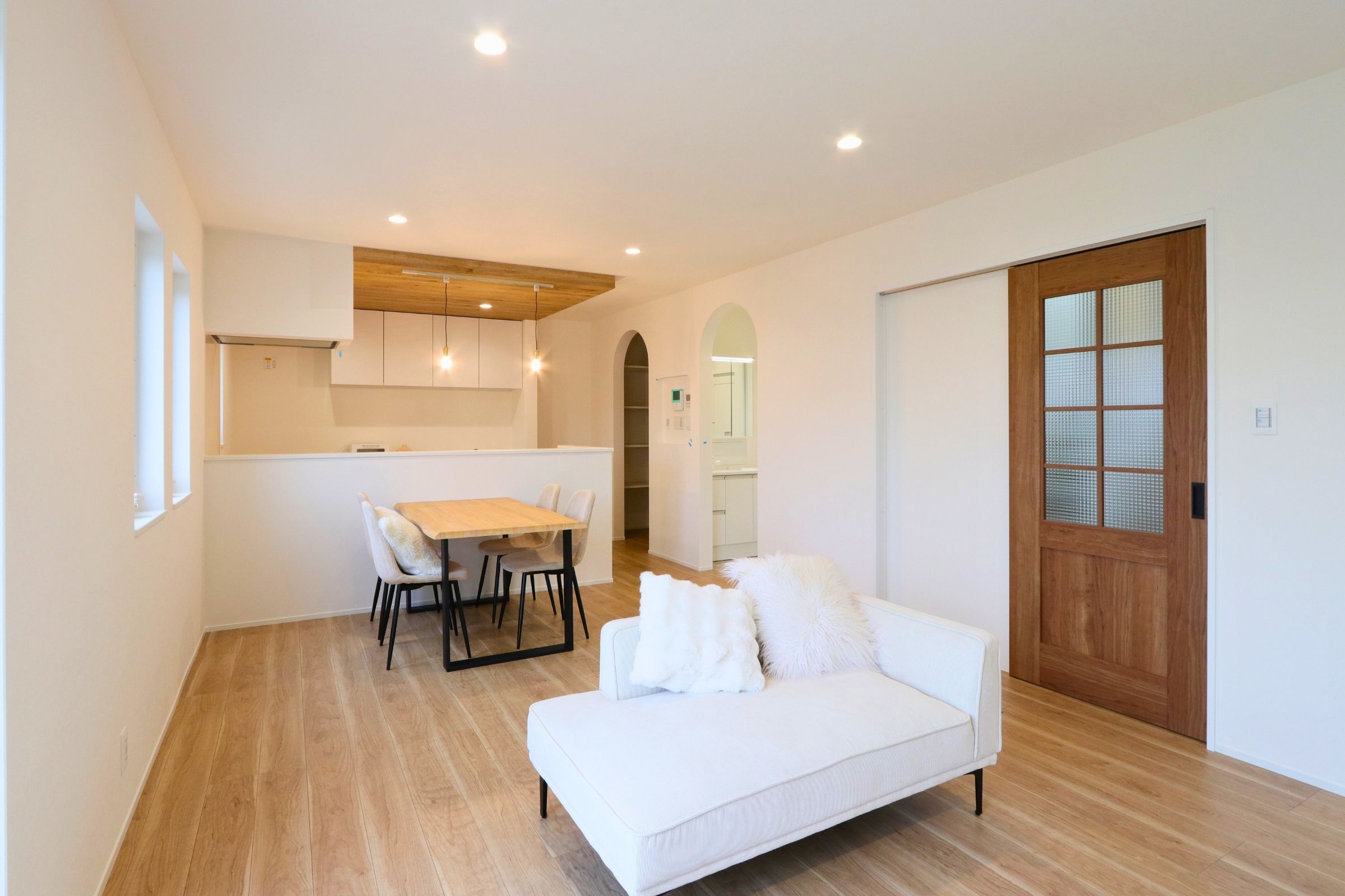 特に扉を無くしてR垂れ壁を採用して空間をお洒落に分けることがでたので採用して良かったです♪